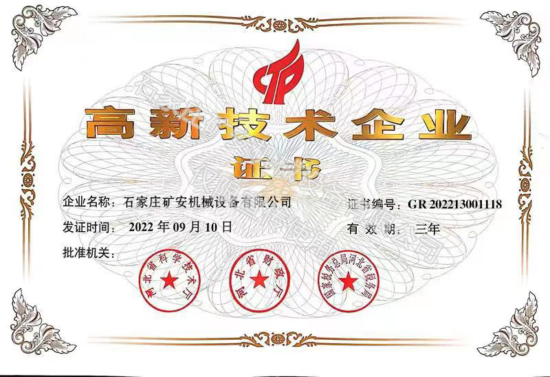 河北省科技型中小企業(yè)  礦用設(shè)備檢修資質(zhì)證
