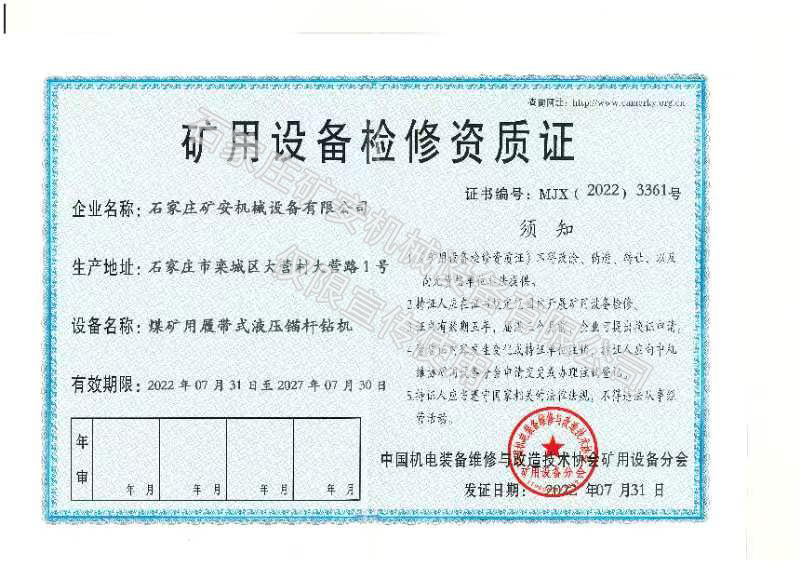 礦用設(shè)備檢修資質(zhì)證  礦用設(shè)備檢修資質(zhì)證